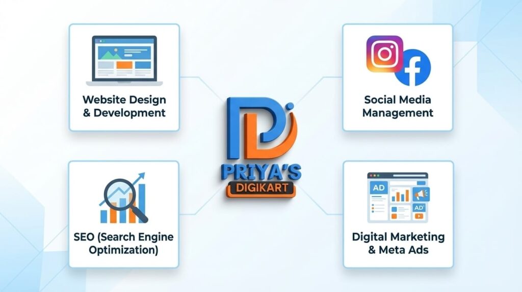 In today’s digital world, having a strong online presence is essential for every business. Priya’s Digikart works with businesses to build professional websites, improve social media presence, and increase visibility on Google.